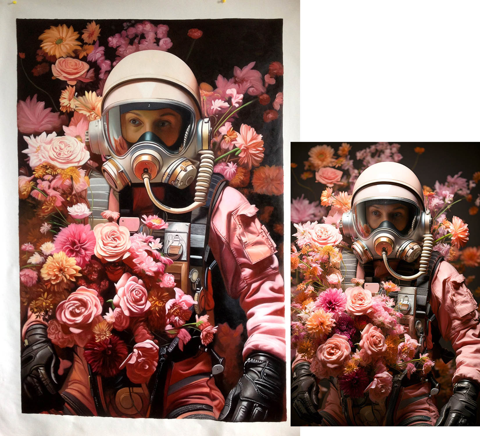 With our talented artists, we are able to turn your favorite images into a 100% hand-painted oil paintings on linen canvas in museum quality, we can create oil paintings from photography, digital art images or AI art images, totally hand painted by real artists on linen canvas, following please see examples: